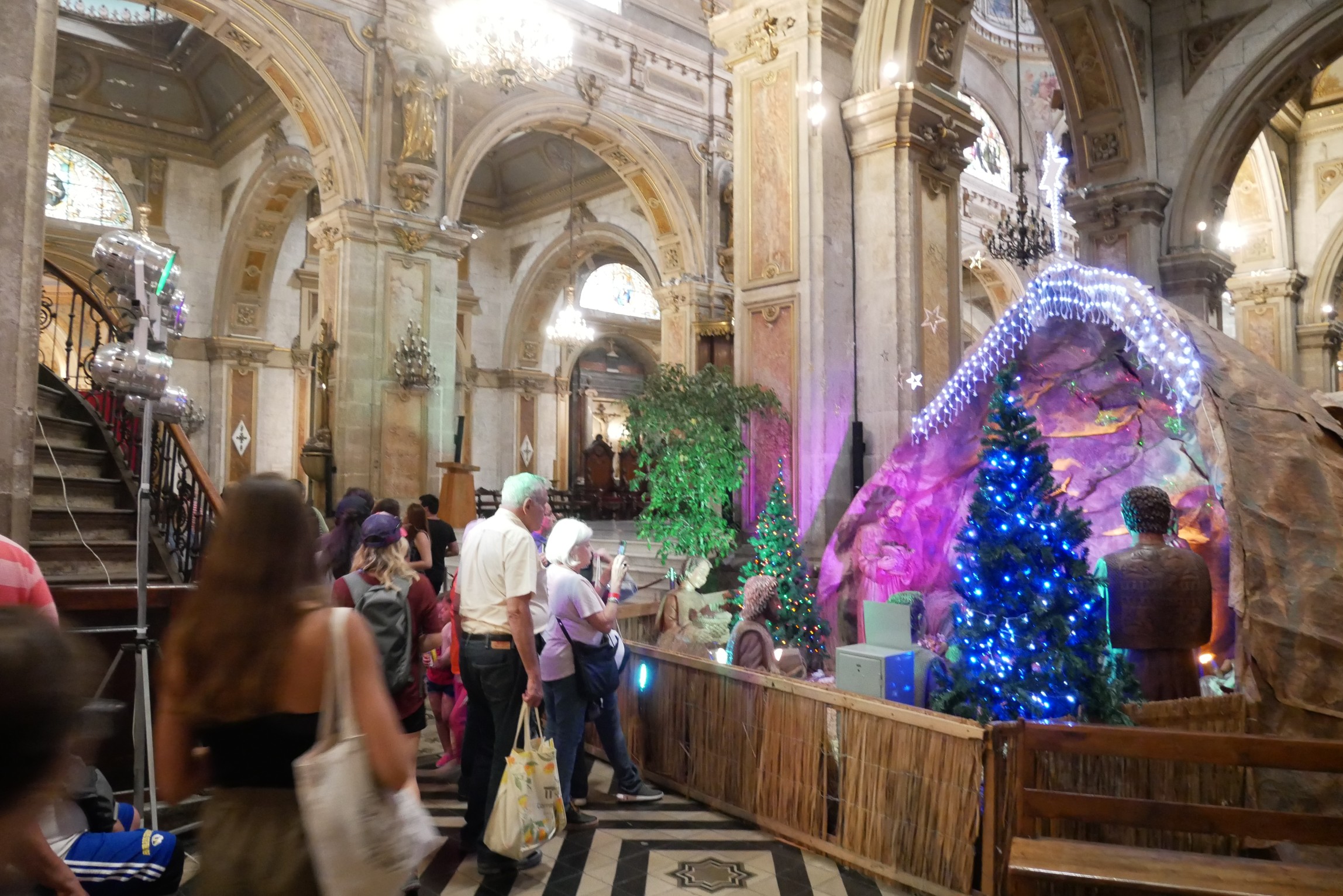 Die beiden spannendsten Sachen waren die recht bunt und blinkend aufgemachte Weihnachtskrippe in der sonst eher andächtig gehaltenen Kathedrale und die Geschichte über "Coffee with Legs". Um die in Chile nicht sehr gängige Kaffeehauskultur anzukurbeln, kam irgendwann die Idee auf, Kaffee mit leicht bekleideten Damen zu kombinieren. "With legs" bezieht sich also auf die sehr kurzen Röcke. Aus diesem Grund ist der Zutritt in Cafes in Santiago oft erst ab 18 erlaubt, die Scheiben sind abgedunkelt und Polizeikontrollen, ob auch wirklich nur Kaffee verkauft wird, sind nicht unüblich. Zum Glück hatte ich meinen Koffeinkonsum bereits in Argentinien auf Mate umgestellt, unter diesen Umständen habe ich auf einen vermutlich teuren und dafür mäßig schmackhaften Kaffee doch lieber verzichtet.