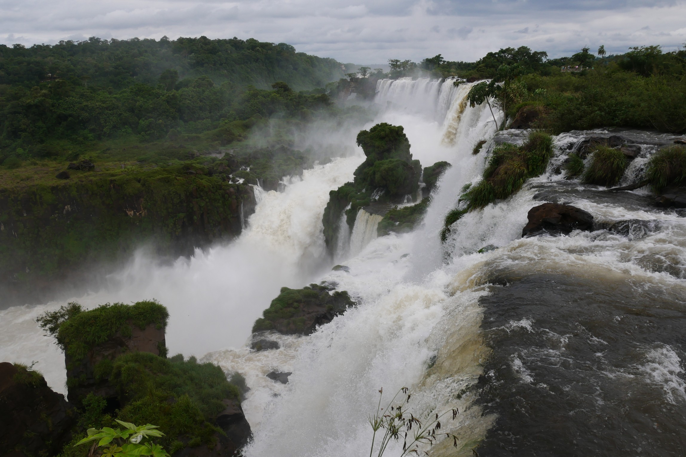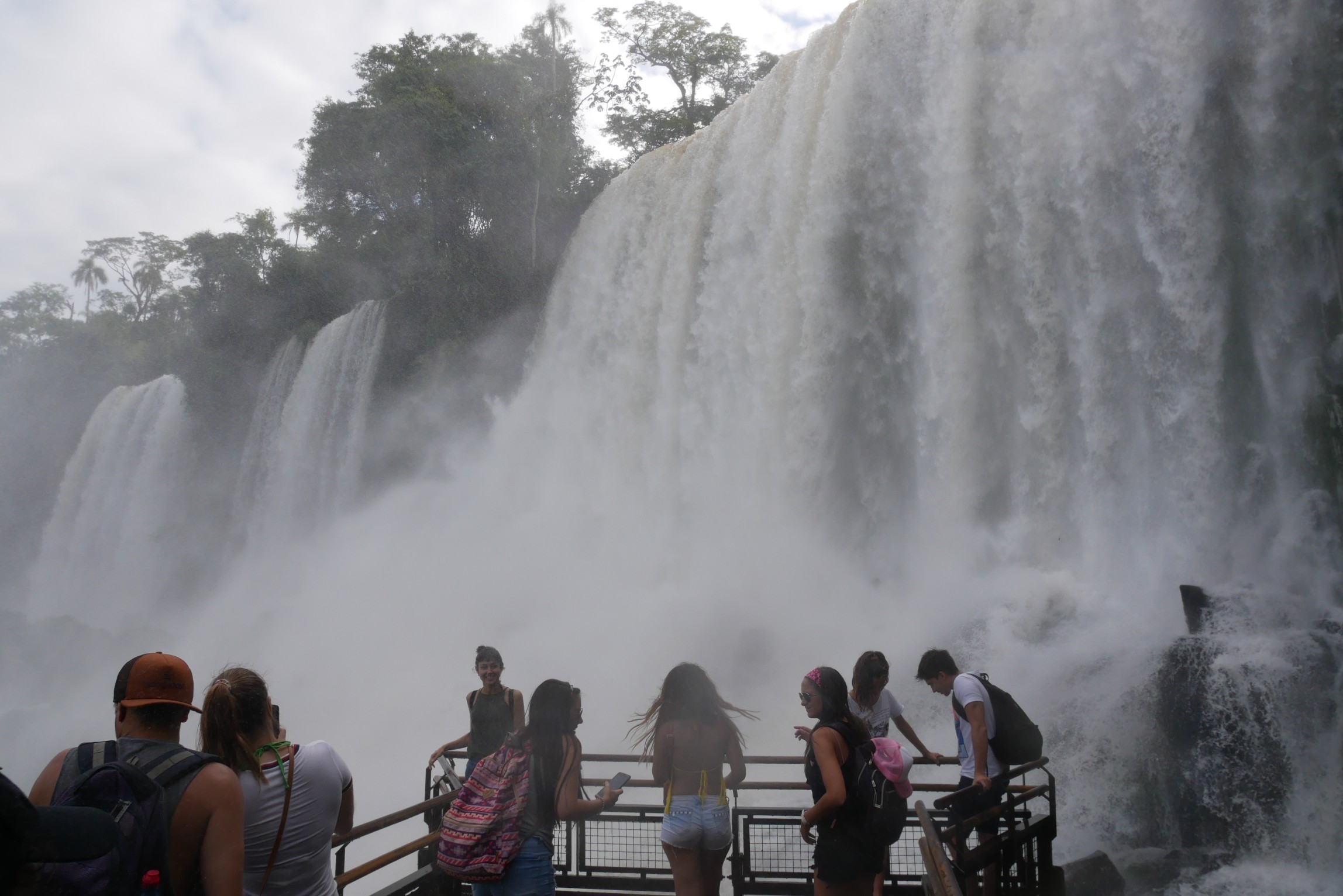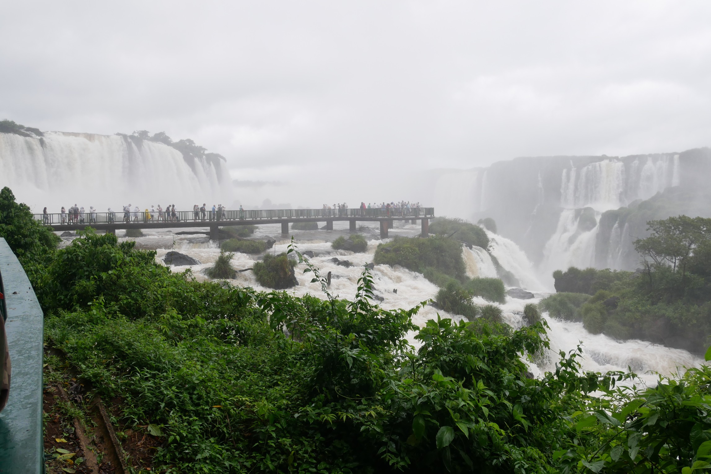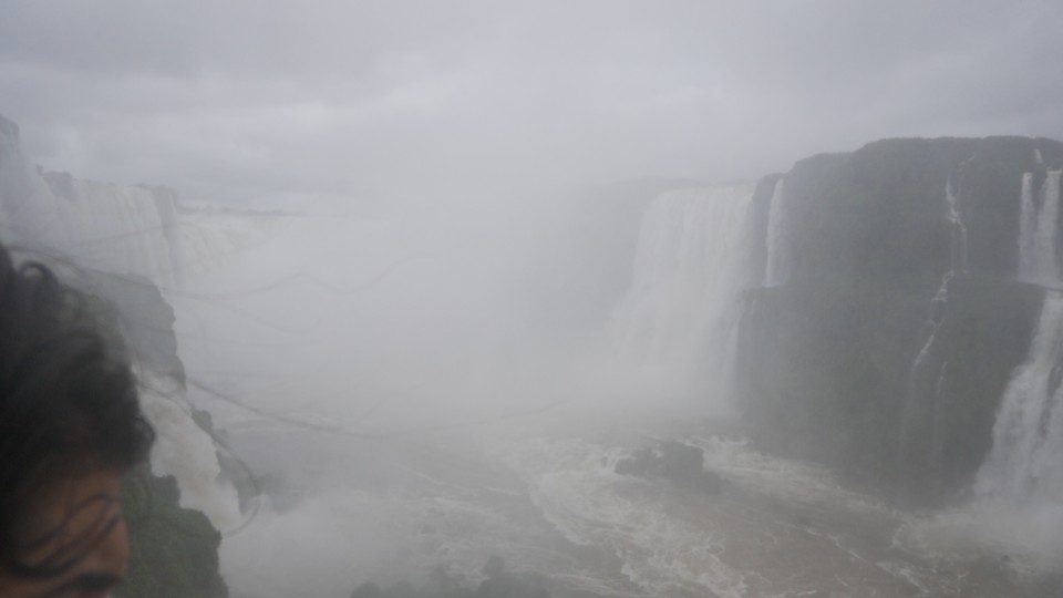 Das große Highlight der brasilianischen Seite ist der Steg an den "Garganta del Diablo". Ein wenig Gedränge kann man bereits aus der Ferne sehen, die ganz großen Wasserfälle selbst sind von den mit dem Wind heraufgetragenen Wassertröpfchen verborgen.