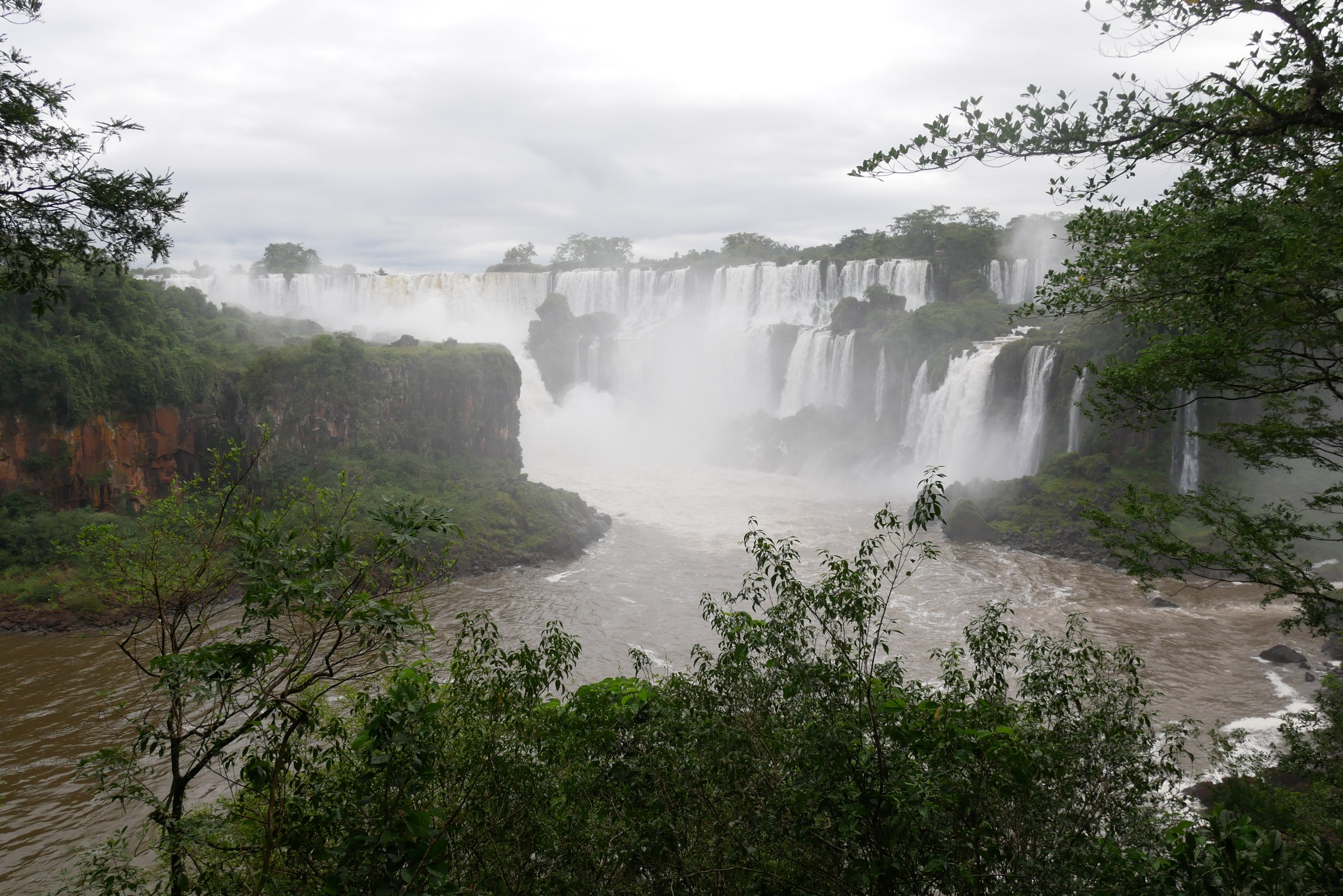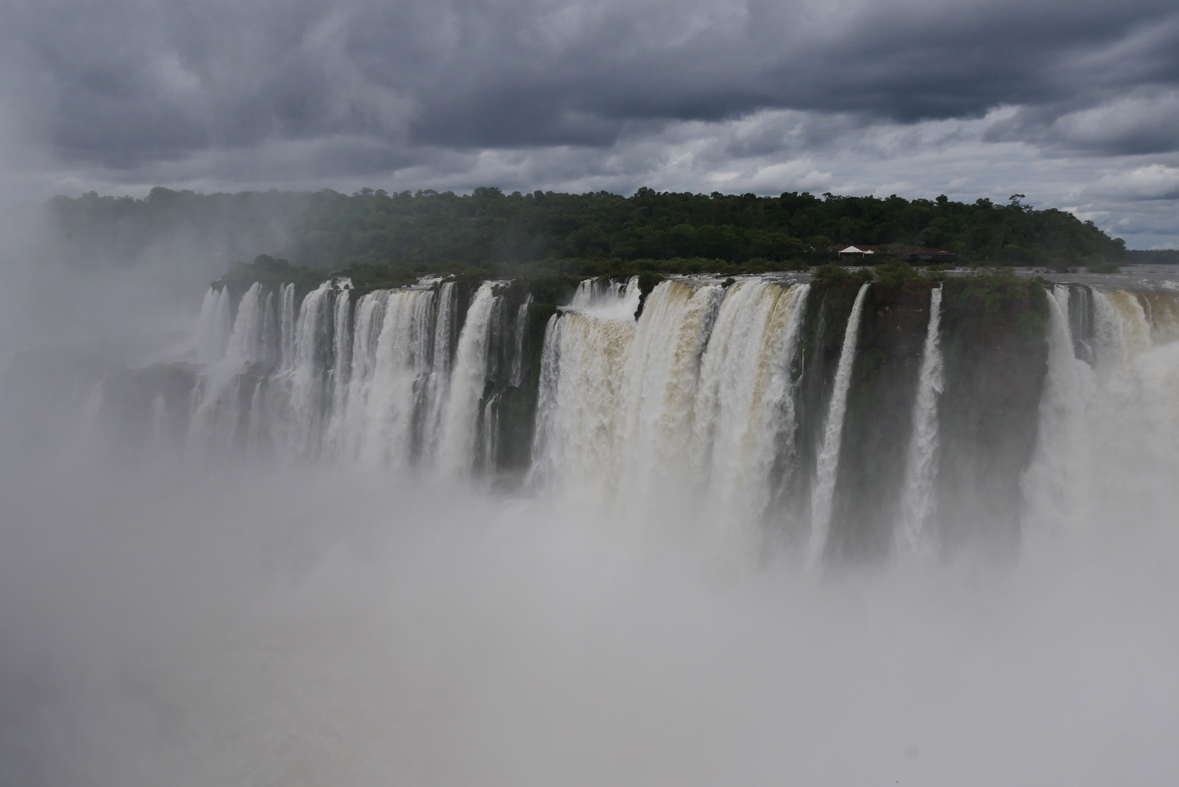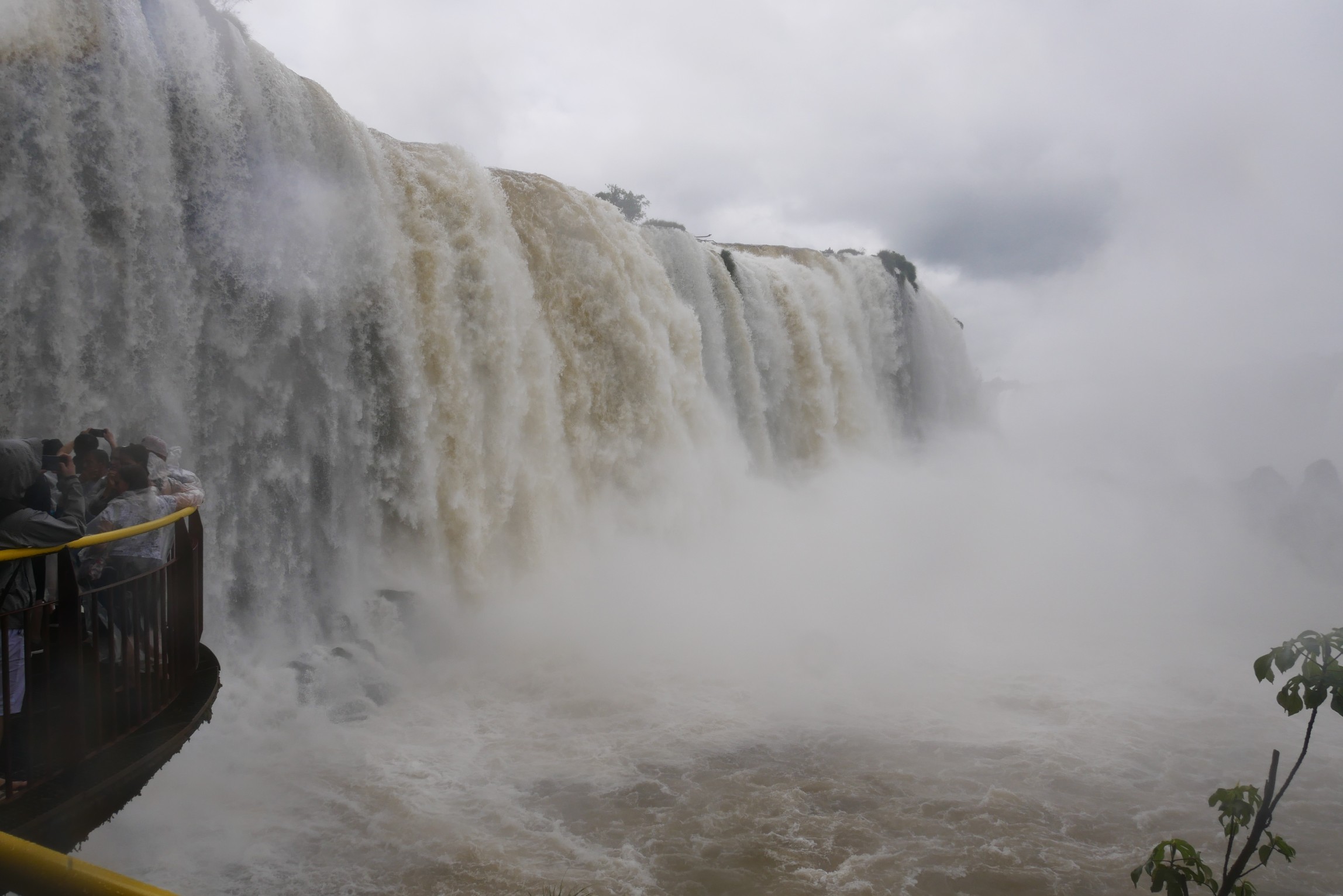 Das große Highlight der brasilianischen Seite ist der Steg an den "Garganta del Diablo". Ein wenig Gedränge kann man bereits aus der Ferne sehen, die ganz großen Wasserfälle selbst sind von den mit dem Wind heraufgetragenen Wassertröpfchen verborgen.