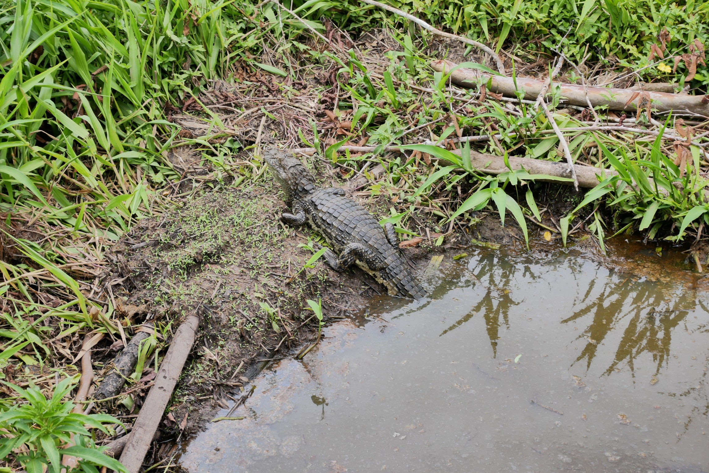 Aus der groß angepriesenen Panoramabahn gibt es keine Fotos, das Panorama beschränkte sich auf die ca. 20 Meter breite Schneise für die Gleise und den Blick auf den umgebenden Dschungel. Dafür haben auf dem Weg zum Garganta del Diablo zwei Tiere darauf verzichtet, sich zu verstecken. Schildkröten liebe ich, wie in diesem Blog vermutlich an mehreren Stellen recht deutlich herauskommen wird. Das Krokodil war zwar keinen Meter lang, aber trotzdem spannend, mal eines in freier Wildbahn zu sehen.