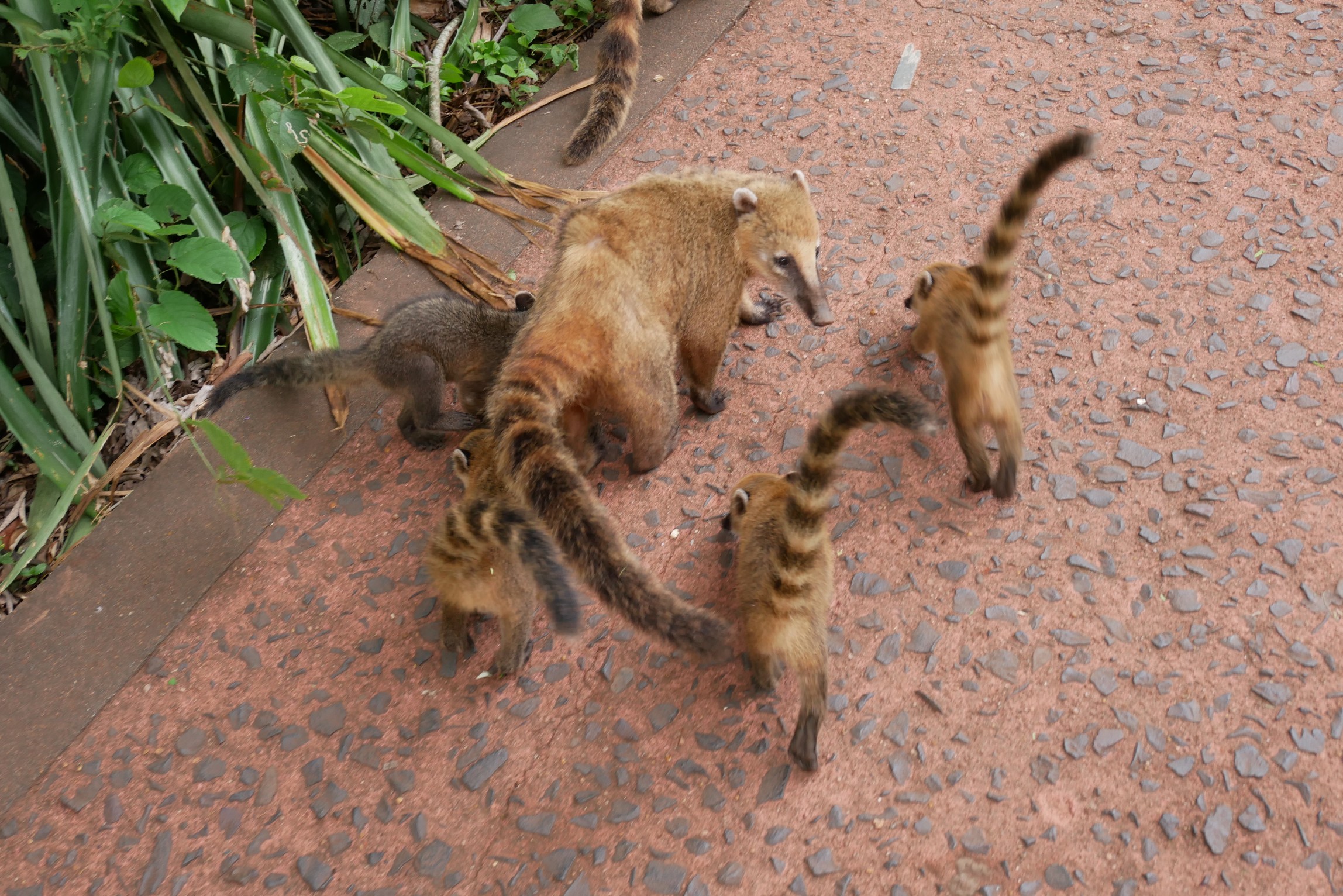 Bei den Nasenbären muss man laut Reiseführer aufpassen, da sie recht aggressiv werden können, wenn man Essen dabei hat. Bei mir waren sie aber friedlich, haben sich ihr Fressen in der Nähe im Wald gesucht bzw. sind an Bäumen und Geländern herumgetollt. Vor allem die Jungen waren sehr verspielt, lustig ihnen zuzuschauen.