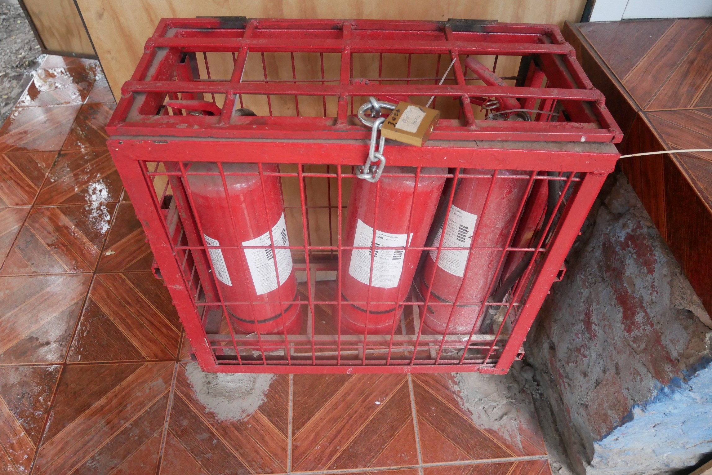 Abgeschlossene Feuerlöscher. So stiehlt sie wohl keiner, aber dann kann man sich die Teile auch gleich sparen...