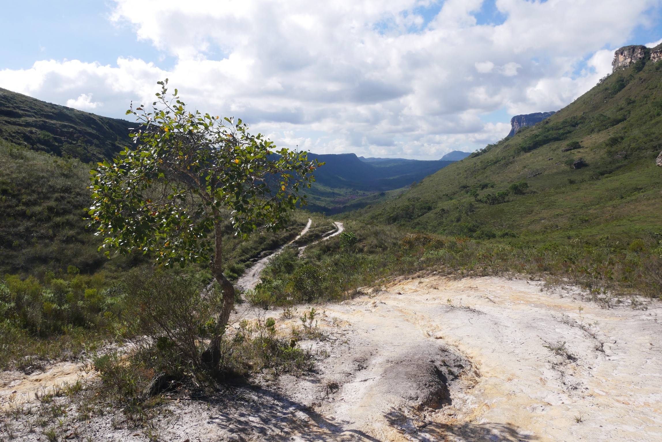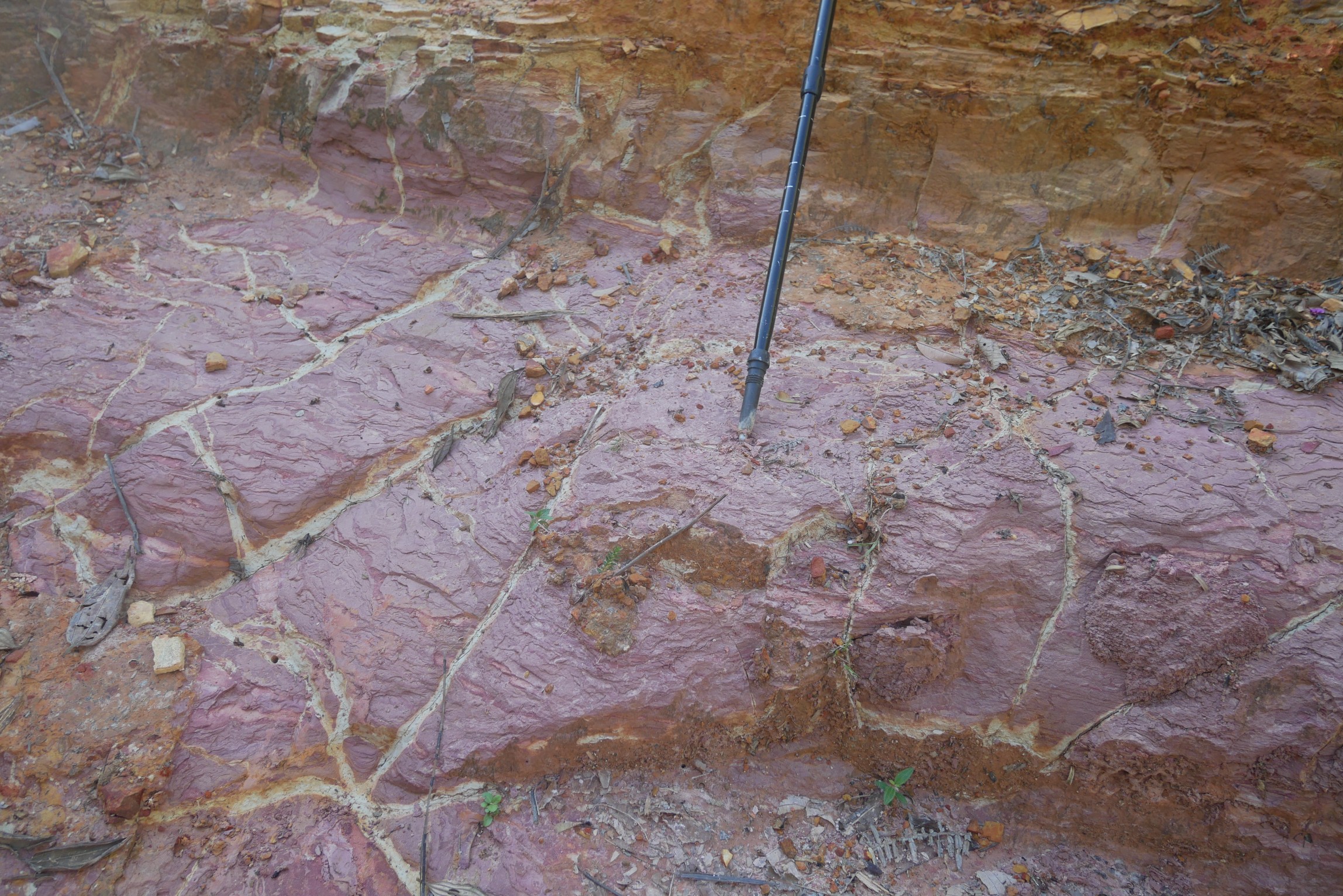 Bei schöner Aussicht auf den Weg zurück gab es noch einen Snack und ein Selfie. Die Überlegung "ich bin jetzt seit Monaten in Südamerika, ich komme wohl ohne Sonnencreme aus" war offensichtlich falsch, deshalb das Halstuch im Nacken. Für den nächsten Tag konnte ich mir zum Glück im Hostel Sonnencreme organisieren. Hier noch eine Aufnahme des farblich unterschiedlichen Lehmbodens. Wie ich bereits in Iguazu festgestellt habe, mag ich andersfarbigen Boden. Interessant, was man beim Reisen für neue Seiten an sich entdeckt :-D