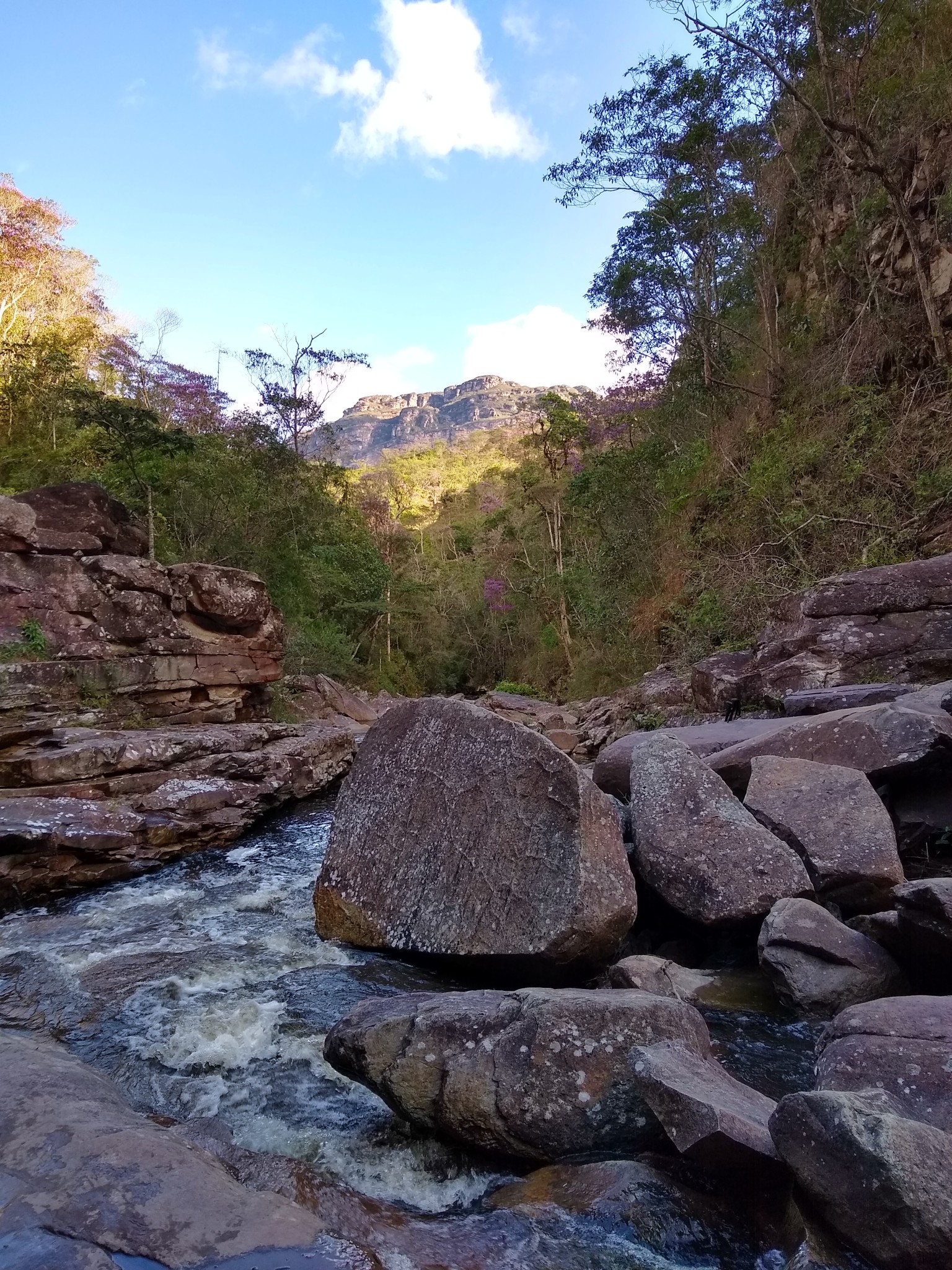Nach dem Abstieg kam nun der erneute Versuch, einen als recht idyllisch beschriebenen Wasserfall zu erreichen. Versuch 1 war entweder am hohen Wasserstand oder an Unfähigkeit gescheitert, ich habe am Vortag von der Nordseite aus den Weg trotz längerem Umschauen nicht gefunden. Und auch der zweite Anlauf wäre fast gescheitert, wären mir nicht Leute entgegen gekommen. Es handelte sich um das englisch-polnische Paar, das am Vortag von Bienen angegriffen wurde. Wir unterhielten uns ein wenig, danach erklärten sie mir den Weg durch das Flussbett und wo ich am besten die Flussseite wechseln kann. Es waren dann nur noch wenige Minuten flussaufwärts. Am Weg gab es eine weitere Vogelspinne und einen kleineren Wasserfall.