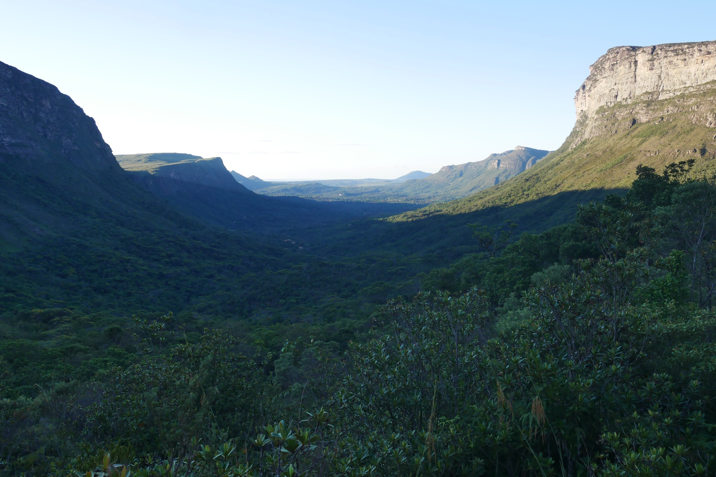 Die Strecke ist auch deshalb etwas weniger beliebt als über die Ebene mit Steppe, weil man durch den Wald den größten Teil des Weges kaum Aussicht hat. Unten eine der wenigen Ausnahmen auf den ersten zehn Kilometern. Den gleichen Weg zurück war mir aber zu langweilig. Und Dschungel sieht zwar auf Fotos selten spannend aus (zumindest auf meinen nicht), ist vor Ort aber immer interessant. Die Flussüberquerung am Wasserfall hat mich gut 15 Minuten gekostet, da sich diese gut handtellergroße Spinne nicht von dem als Aufstiegshilfe angebrachten Baumstamm vertreiben lassen wollte. Am Ende habe ich mir einen Umweg gesucht.